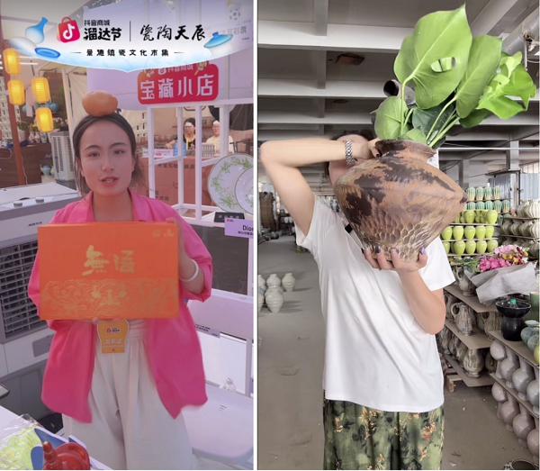 破局的转机,就藏在市集的烟火气里。在前段时间结束的景德镇瓷文化市集上,商家们惊喜地发现:线下场景本身就是最好的内容。有人在直播间实时展示不同作品的搭配效果,让观众直观感受器物之美;有人细致讲解拉坯、上釉等制作工艺,揭开商品背后的匠心;还有人热情接待现场消费者,并将真实反馈同步给线上观众,让其沉浸式感受匠人工艺的魅力,在潜移默化中吸引下单。