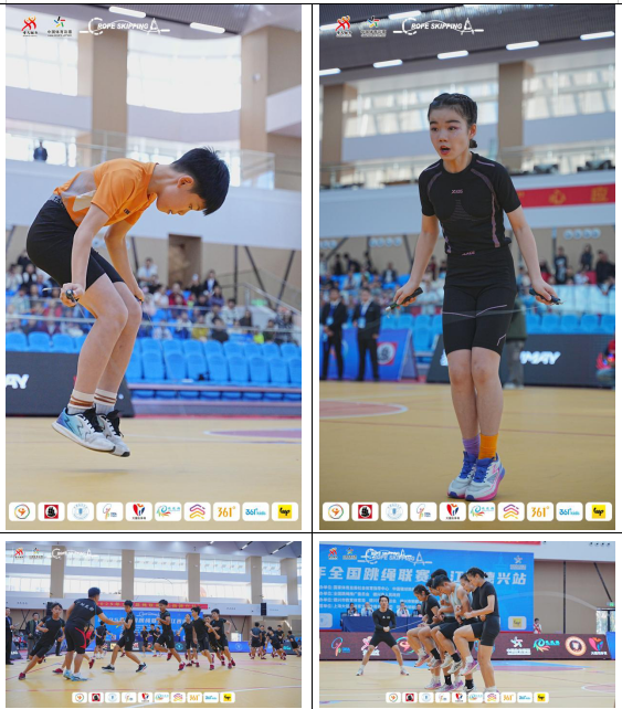 广东省东莞市东莞松山湖中心小学跳绳队的钟依橙、李艾萌在2×30秒双摇接力中联手跳出190次斩获冠军。广州市花都区花东学校的肖远晟从8名选手中脱颖而出,以1065次的成绩成为3分钟单摇跳的“全场速度之王”。南昌师范学院与广大附中花都学校分别以1分钟10人长绳集体跳193次、3分钟10人长绳“8”字跳479次激烈角逐中笑到最后,站上集体项目最高领奖台。