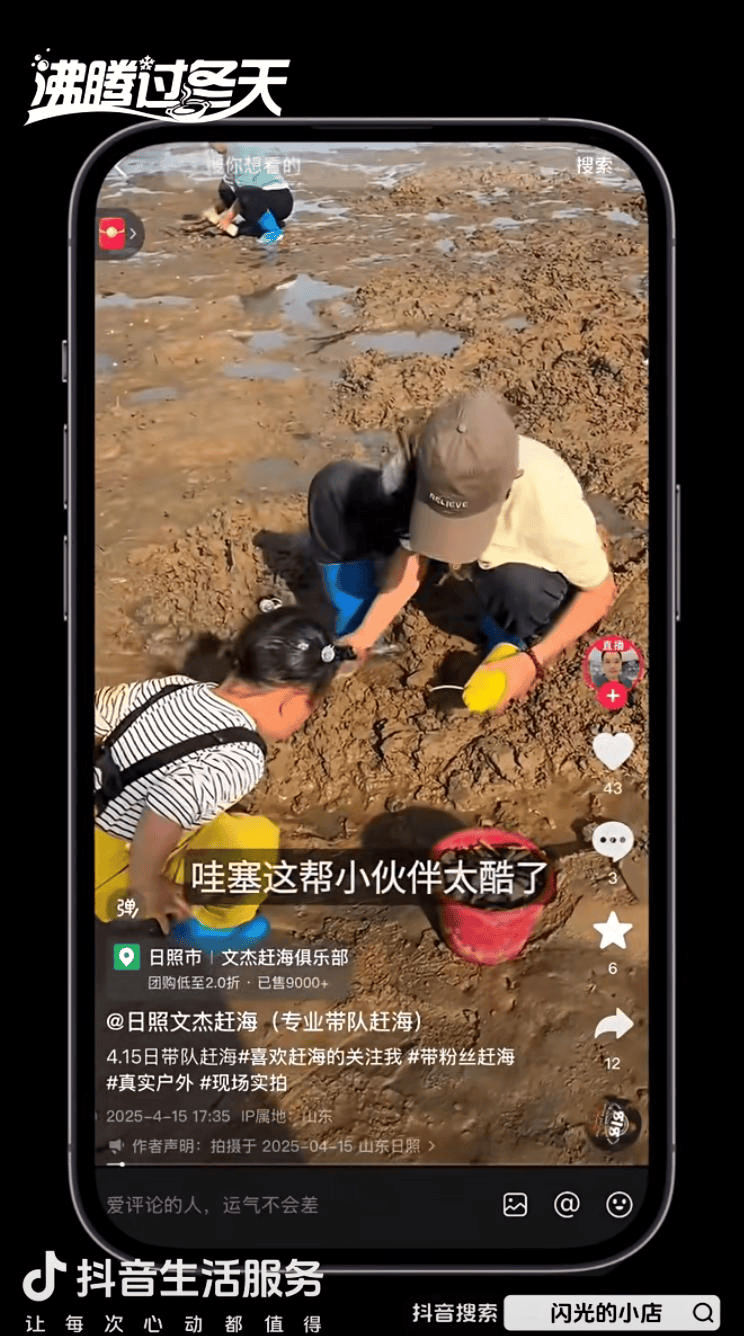 客人多了,小店的经营方式也要再升级。抖音成了文杰接收反馈的窗口:有人问“天气不好能捡到吗”,他调整团购商品说明,告知客人没有收获可以补送一次体验;有公司组织团建赶海想要纪录,他又增加了摄影和无人机服务;暑假时网友表示想带着家人来赶海,小店又推出不同人数的家庭套票……靠着这些来自抖音的真实反馈,文杰不断调整经营细节,改进服务,而新客体验过后觉得好,又把小店“安利”给了更多朋友。在这种良性循环下,文杰赶海俱乐部的生意不断向好。